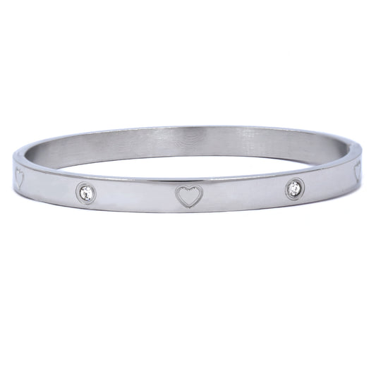 Stainless steel 66mm x 6mm cubic zirconia and heart bangle - SSYB4530