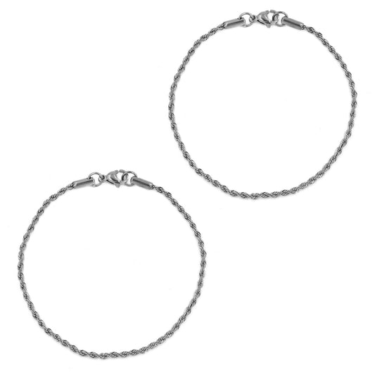 2 Pack Stainless steel 19cm x 2mm rope bracelet - SSYB4677