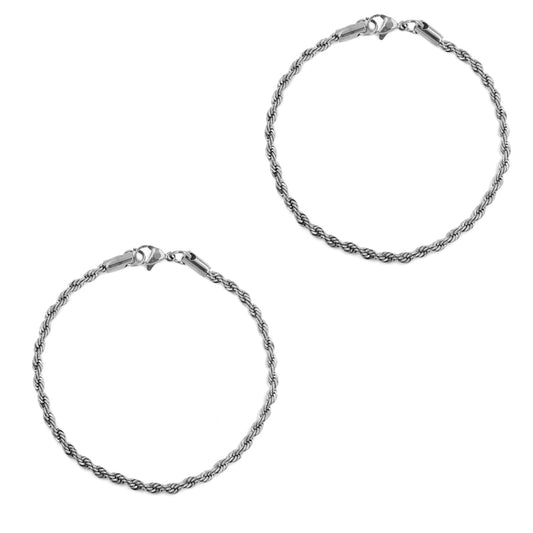 2 Pack stainless steel 19cm x 3mm rope bracelet - SSYB4678