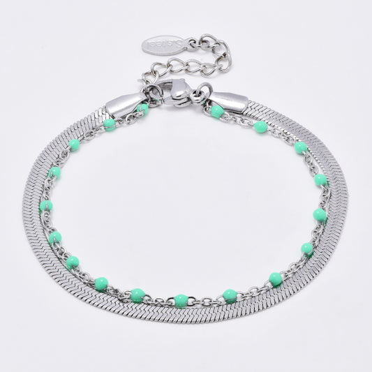 Stainless steel double layer bracelet with colour enamel beads 16+4cm - SSYB4931