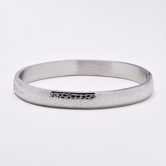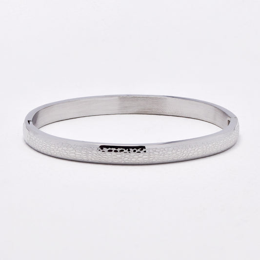 SSYB6613 - St Steel 60mm x 50mm x 4mm animal print ovalhinged bangle