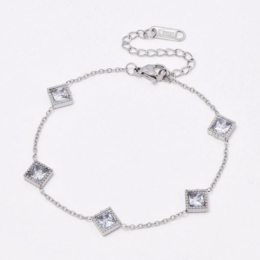 SSYB6304 - St Steel 18cm + 5cm x 6mm chain link framed CZ bracelet