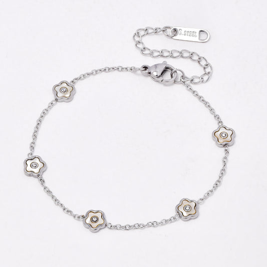 SSYB6543 - St Steel 16cm + 4.5cm shell flower bracelet