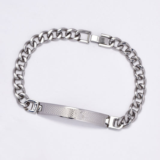 SSMB3020 - Steel 22cm x 8mm checkered cross ID bracelet