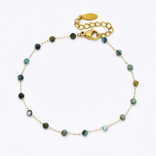 SSYB5942 - St Steel 17+3.5cm natural stone bead bracelet