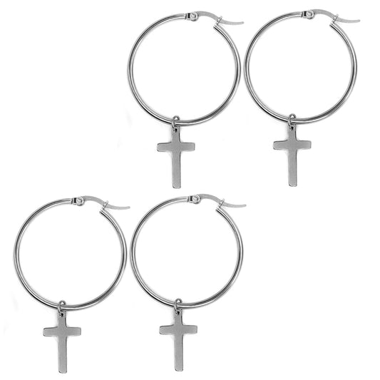 2 Pack Stainless steel 35mm hoop with 18mm x 11mm cross charm earring - SSYE3082