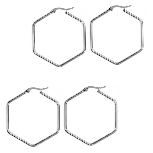 2 Pack Stainless steel 40mm hexagon hoop earring - SSYE3090