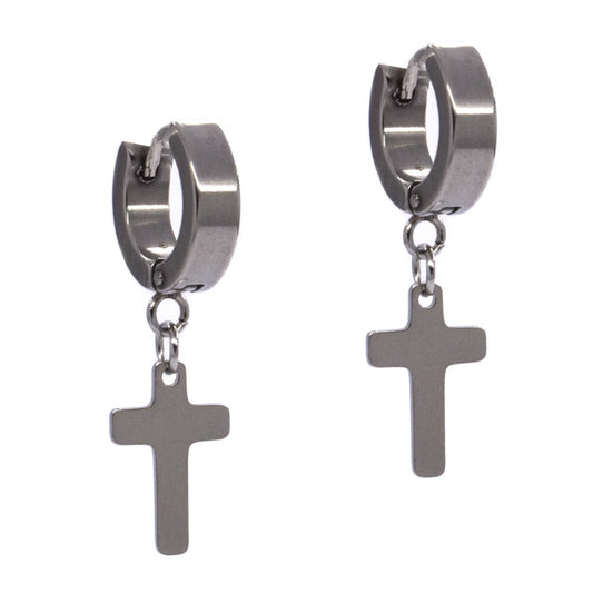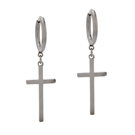 Stainless steel flat cross on sleeper earring - SSYE4293