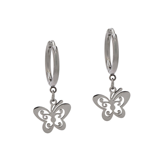Stainless steel butterfly on hoop earring Hoop: 16mm in diameter size Butterfly: 11mm x 13mm - SSYE4291