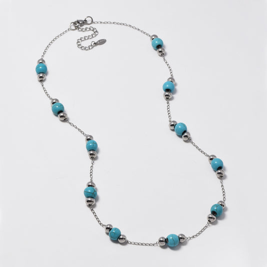 Stainless steel turquoise and silver beaded necklace - SSYN5014A