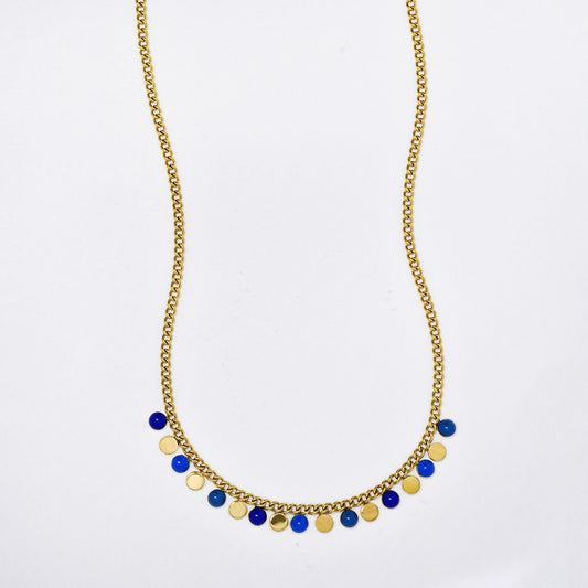 Stainless steel 38+4cm natural stone and disk necklace - SSYN5325