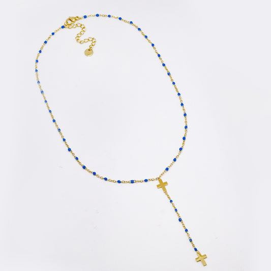 Stainless steel double cross enamel bead necklace - SSYN5332