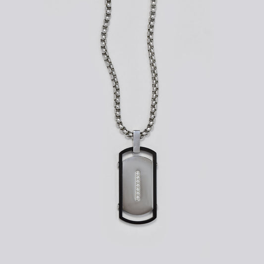 Stainless steel black and silver glitter dogtag on 60cm round box chain - SSYN5480