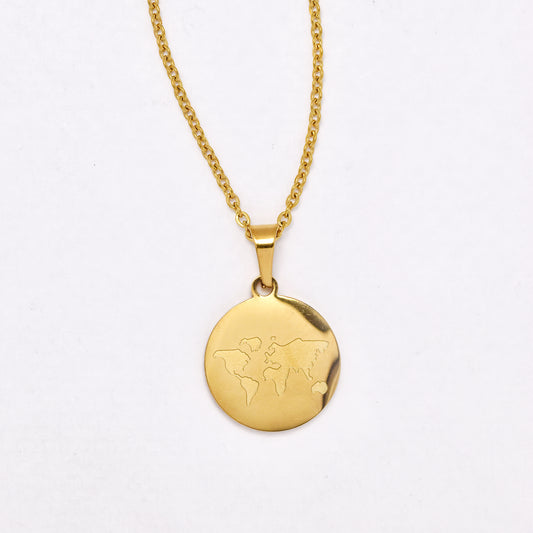 SSYN6628 - St Steel 45cm + 5cm world map necklace