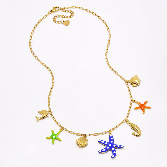 SSYN6656 - St Steel 41cm + 5cm sea life charm necklace