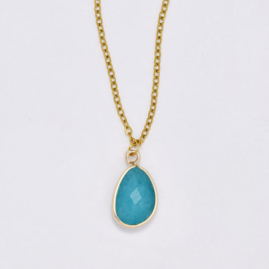 SSYN6014 - St Steel 43cm + 5cm natural faceted stone teardrop necklace
