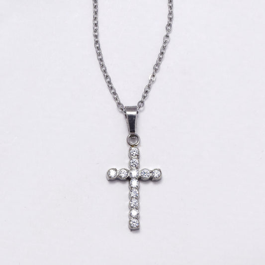 SSYN6018 - St Steel 45cm + 5cm pave CZ cross necklace