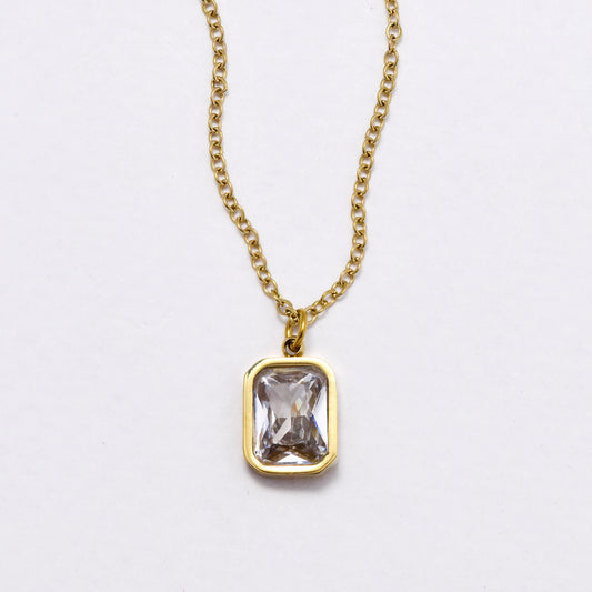 SSYN6030 - St Steel 40cm + 5cm rectangular CZ necklace