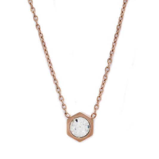 Stainless steel hexagon shape cubic zirconia necklace - SSYN4446