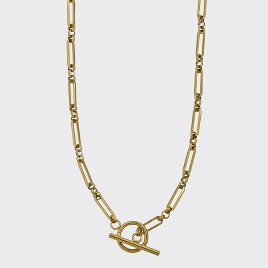 Stainless steel gold plated 45cm paper clip link toggle chain necklace - SSYN4995