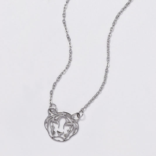 Stainless steel silver necklace with tiger pendant - SSYN4991
