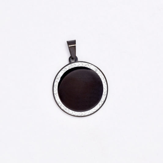 SSYP6455 - St Steel 25mm round crystal disk pendant