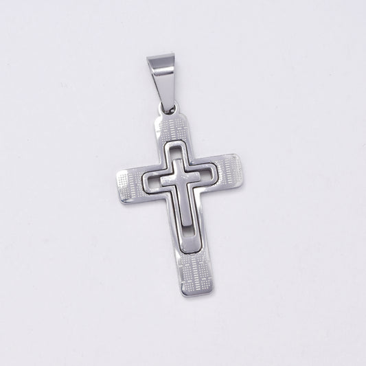 SSMP2998 - Steel 35mm x 22mm layered cross pendant