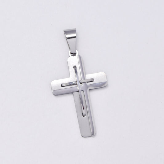 SSMP3024 - Steel 29mm x 13mm small layered cross pendant