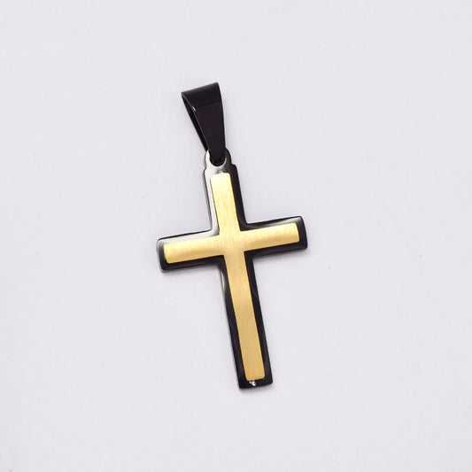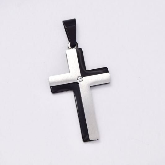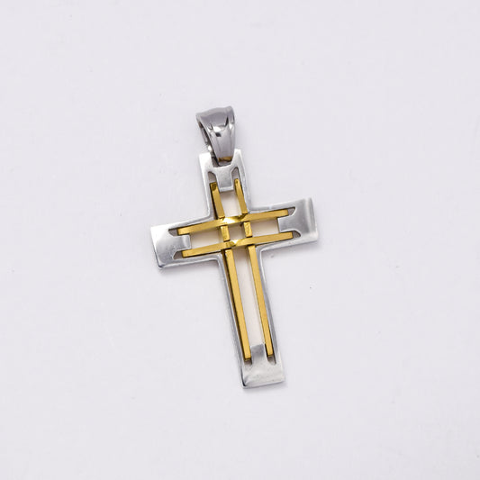 SSMP2990 - Steel 40.5mm x 25mm two tone cross pendant