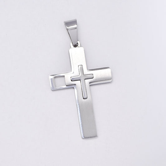 SSMP2974 - Steel 42mm x 22mm cutout line cross pendant