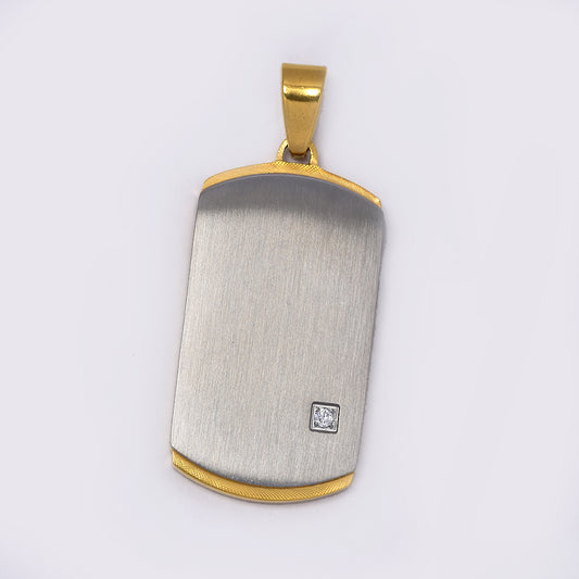 Stainless steel black & silver dog tag pendant with cz - ABSSN116I