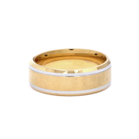 Stainless steel gold plated textured stripe ring - SSYR2252