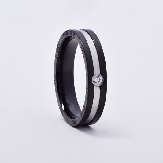 SSMR3079 - Steel 4mm x 2mm two tone inscription CZ ring