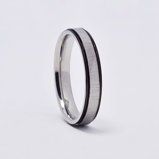 SSMR3084 - Steel 8mm x 2mm slanted line two tone ring