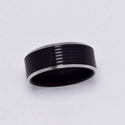 Stainless steel broad black and silver ring with line pattern - SSVR213