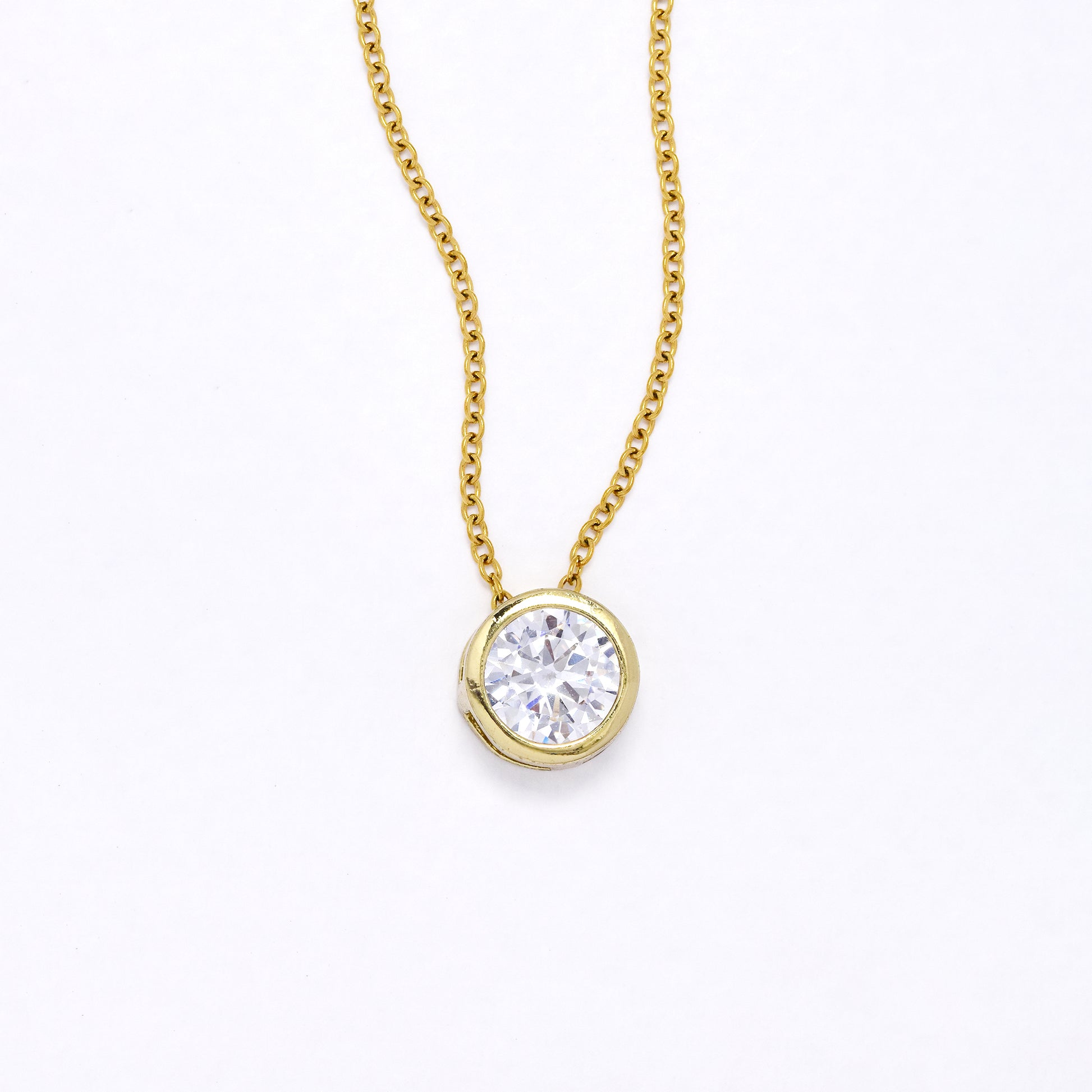 CZYN6227 - 10mm Gold Round CZ Pendant on Chain