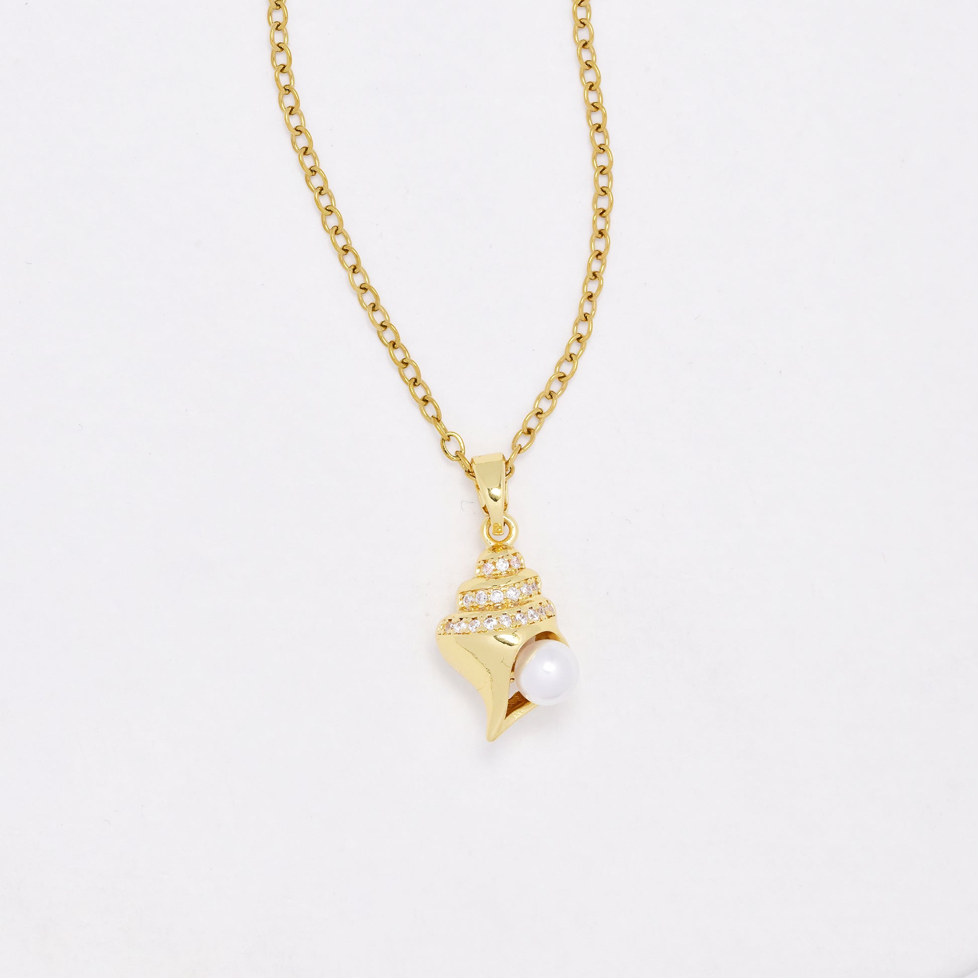 CZYN6466 - Premium 40cm + 5cm CZ conch shell necklace