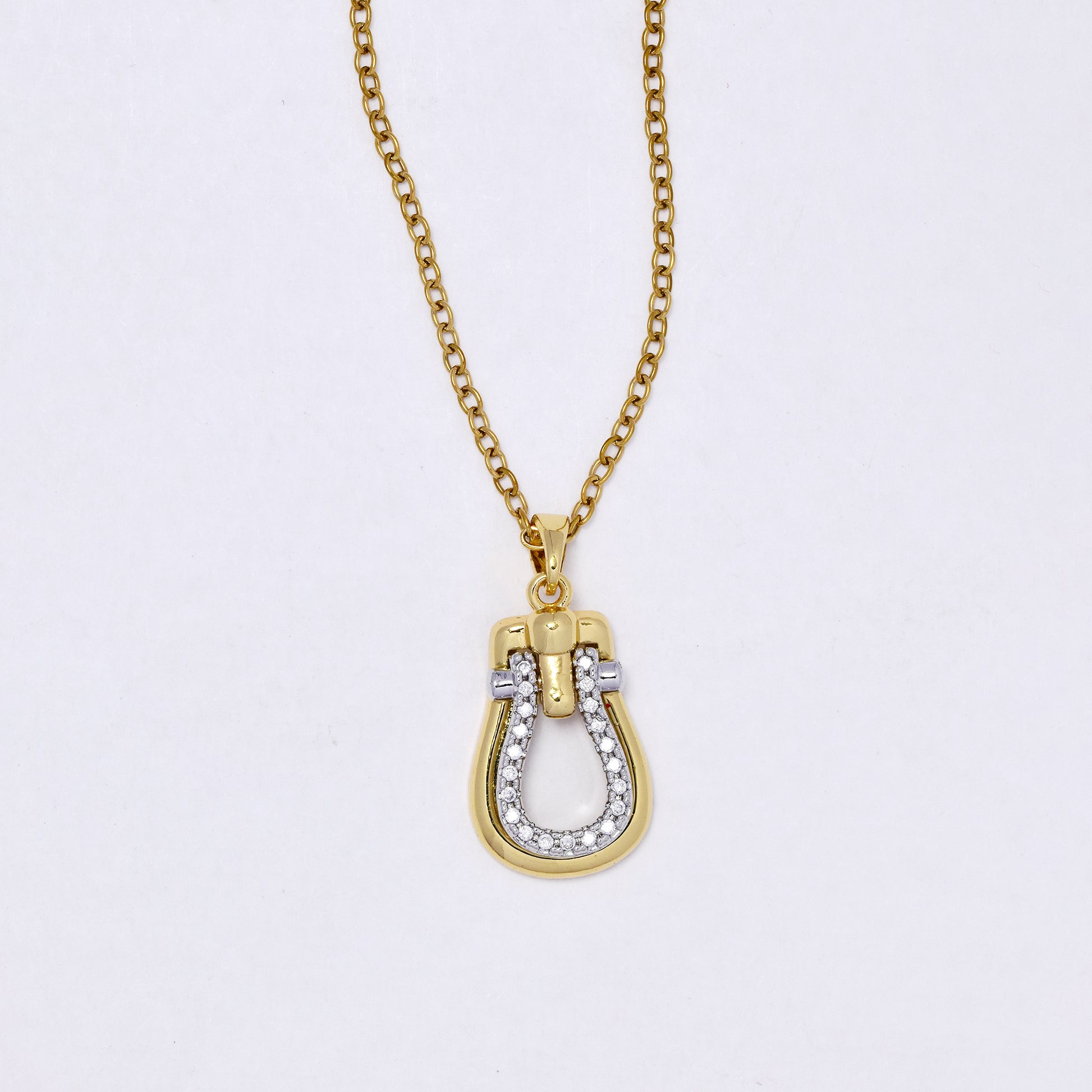 CZYN7297 - Premium brass 44.5cm + 5cm CZ door knocker necklace