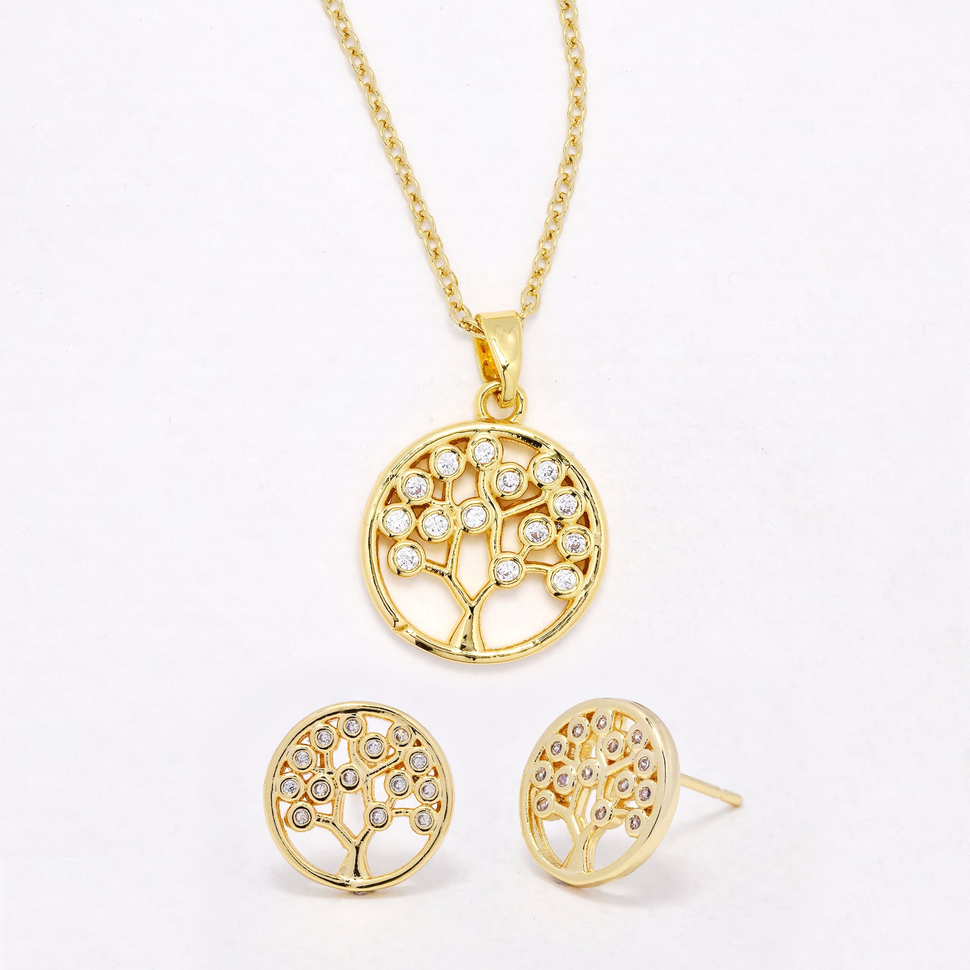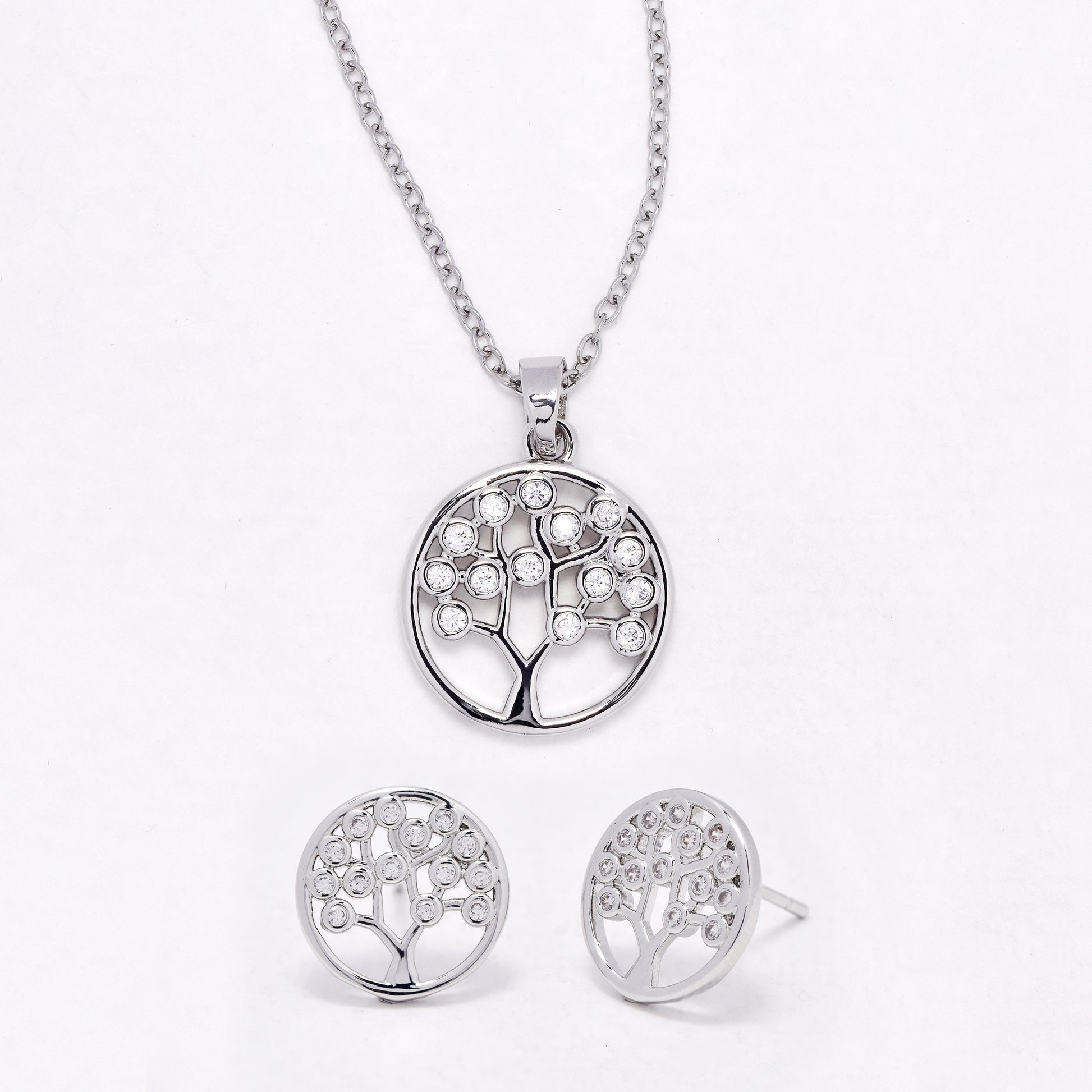 CZYST6590 - Premium CZ tree of life necklace & earring set