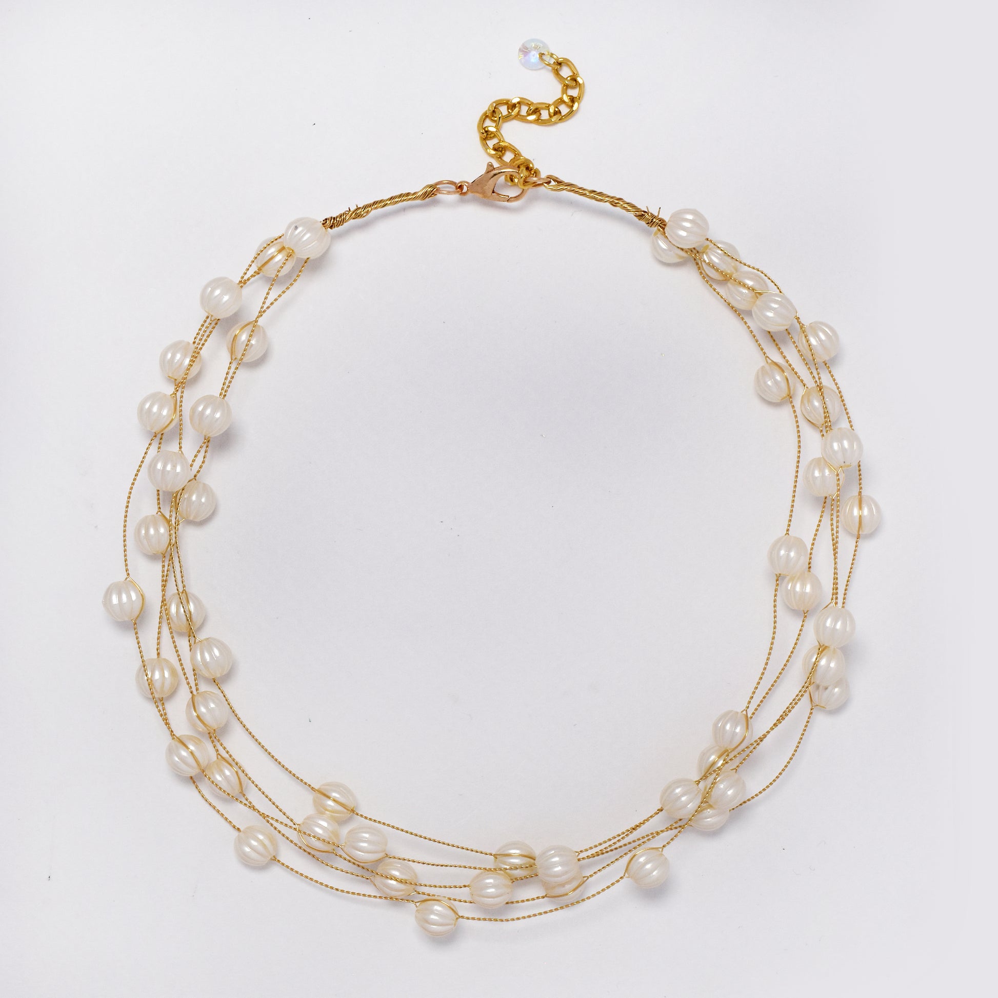 Intertwined multi strand white round faux pearl with grooves necklace - YN5313
