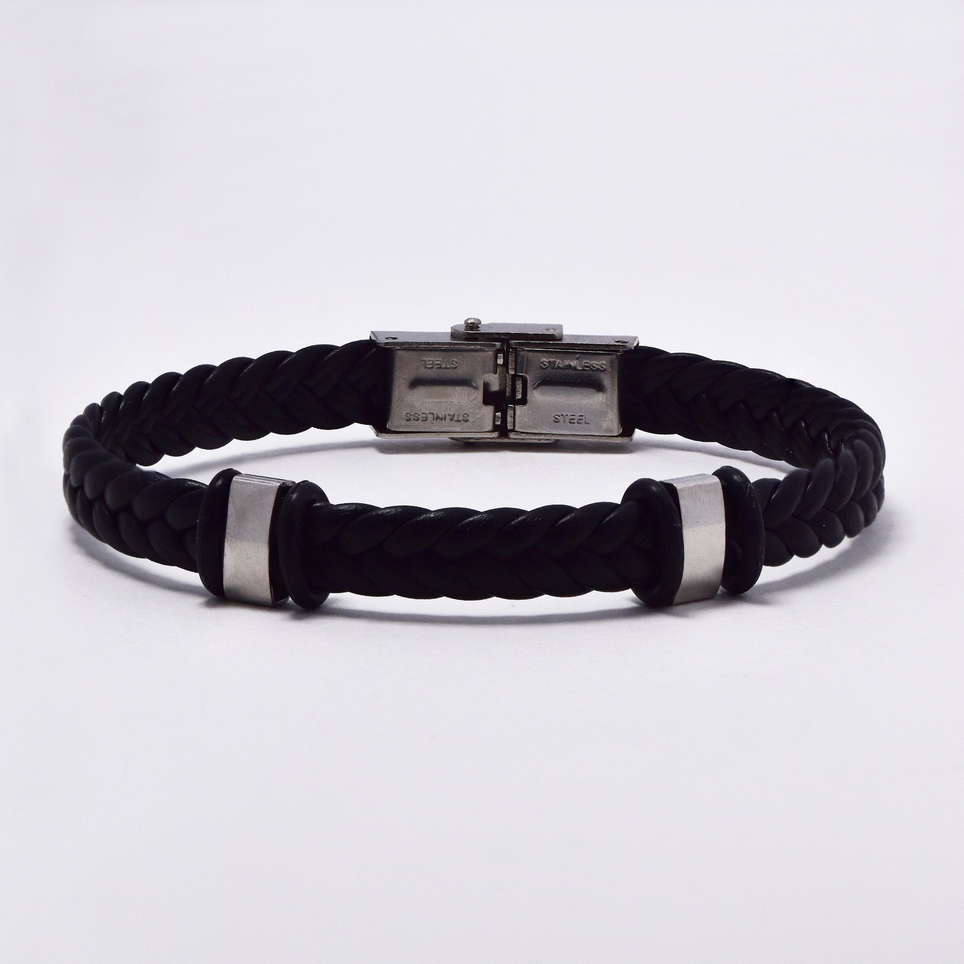 Buy 1 get 1 FREE - NCSSB067 - Steel and leather braided bracelet