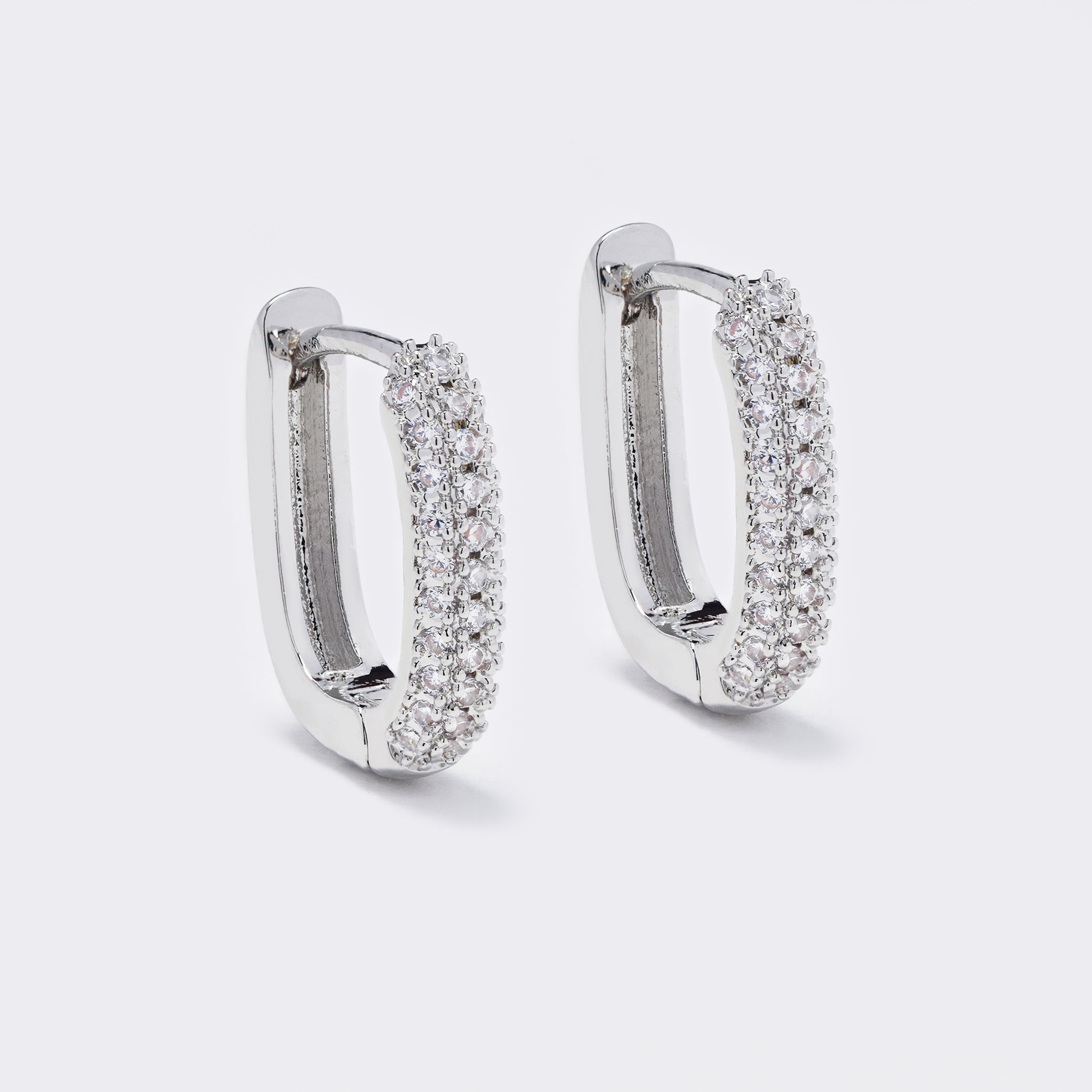 Premium silver plated 16x3mm oval 3 row CZ hoops - CZYE5721