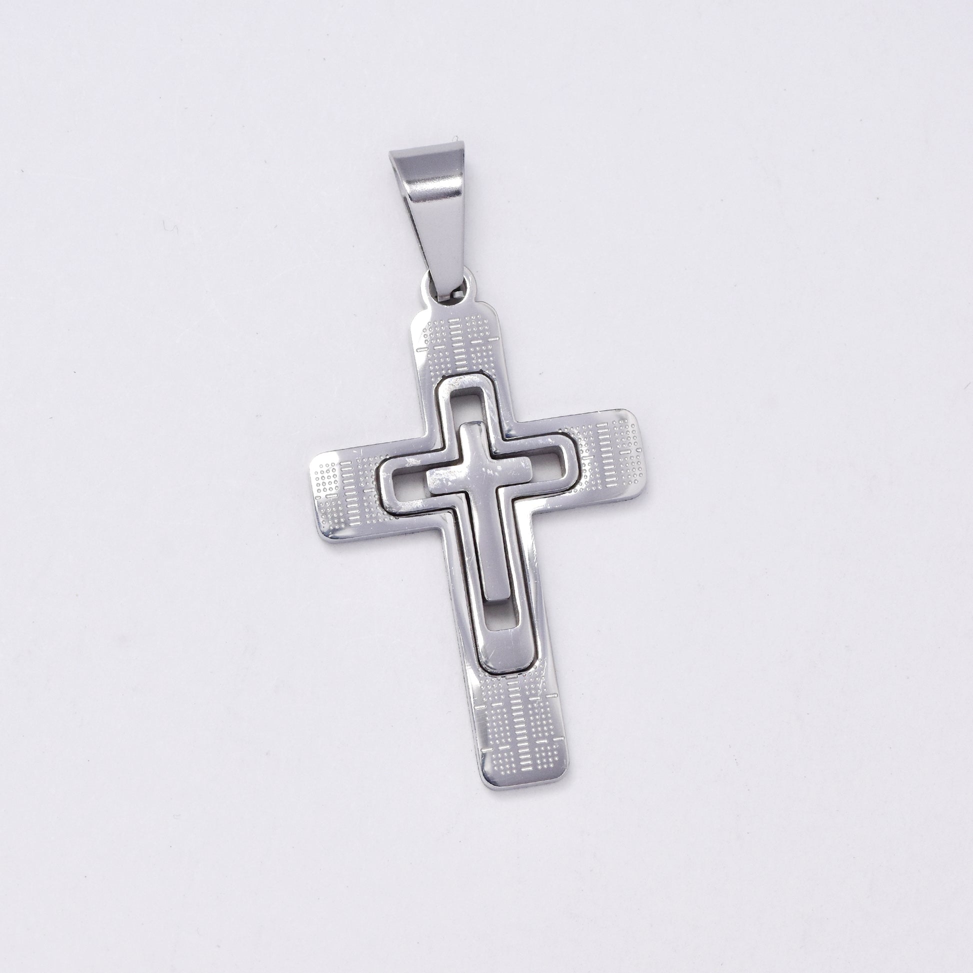 SSMP2999 - Steel 40mm x 25mm line & dotted cross pendant