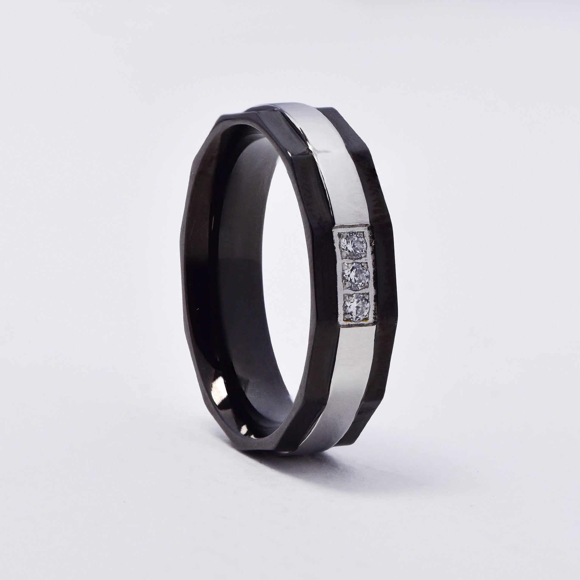 SSMR3076 - Steel 6mm x 2mm black and silver CZ ring