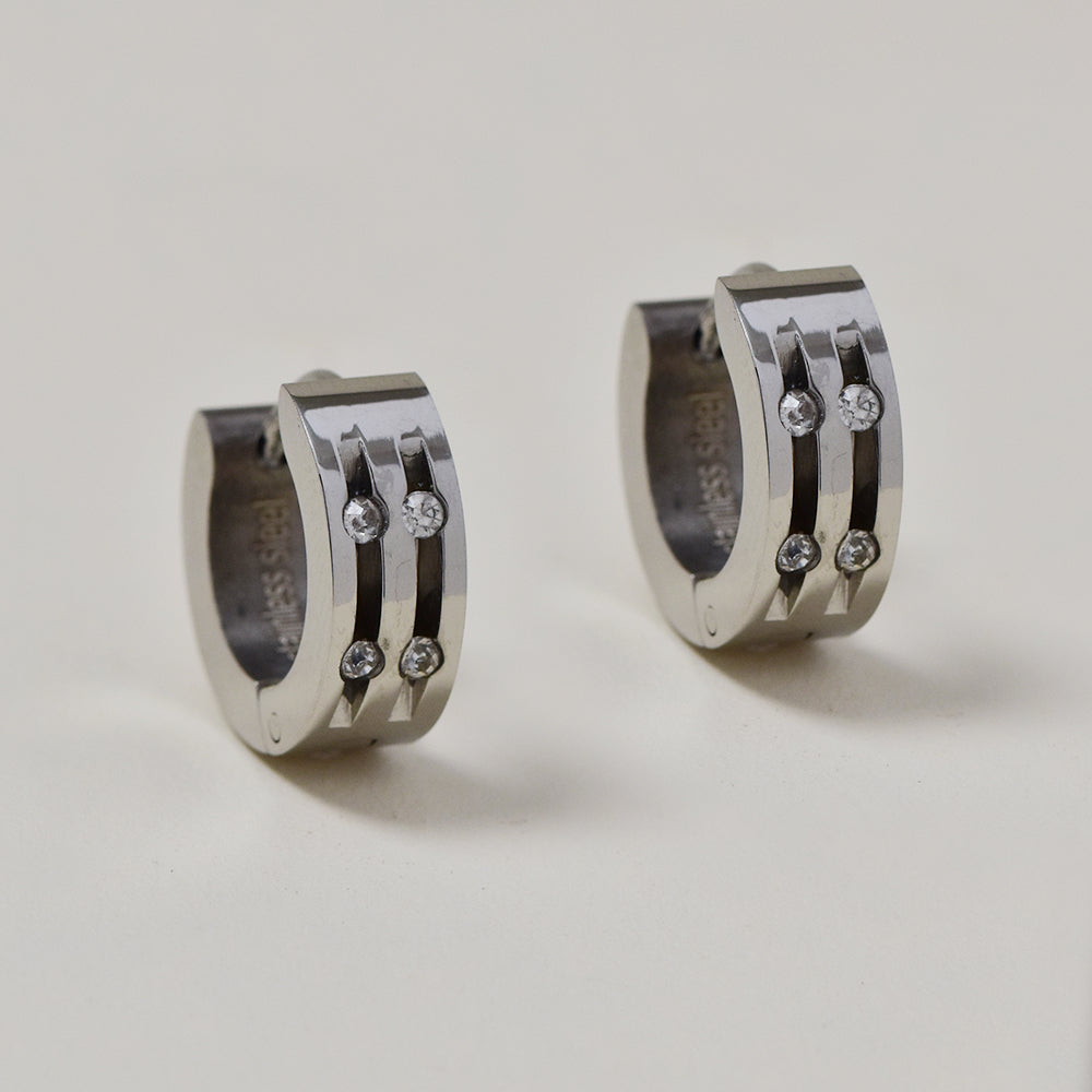 Stainless steel double cubic zirconia row huggie earrings - SSGE9436