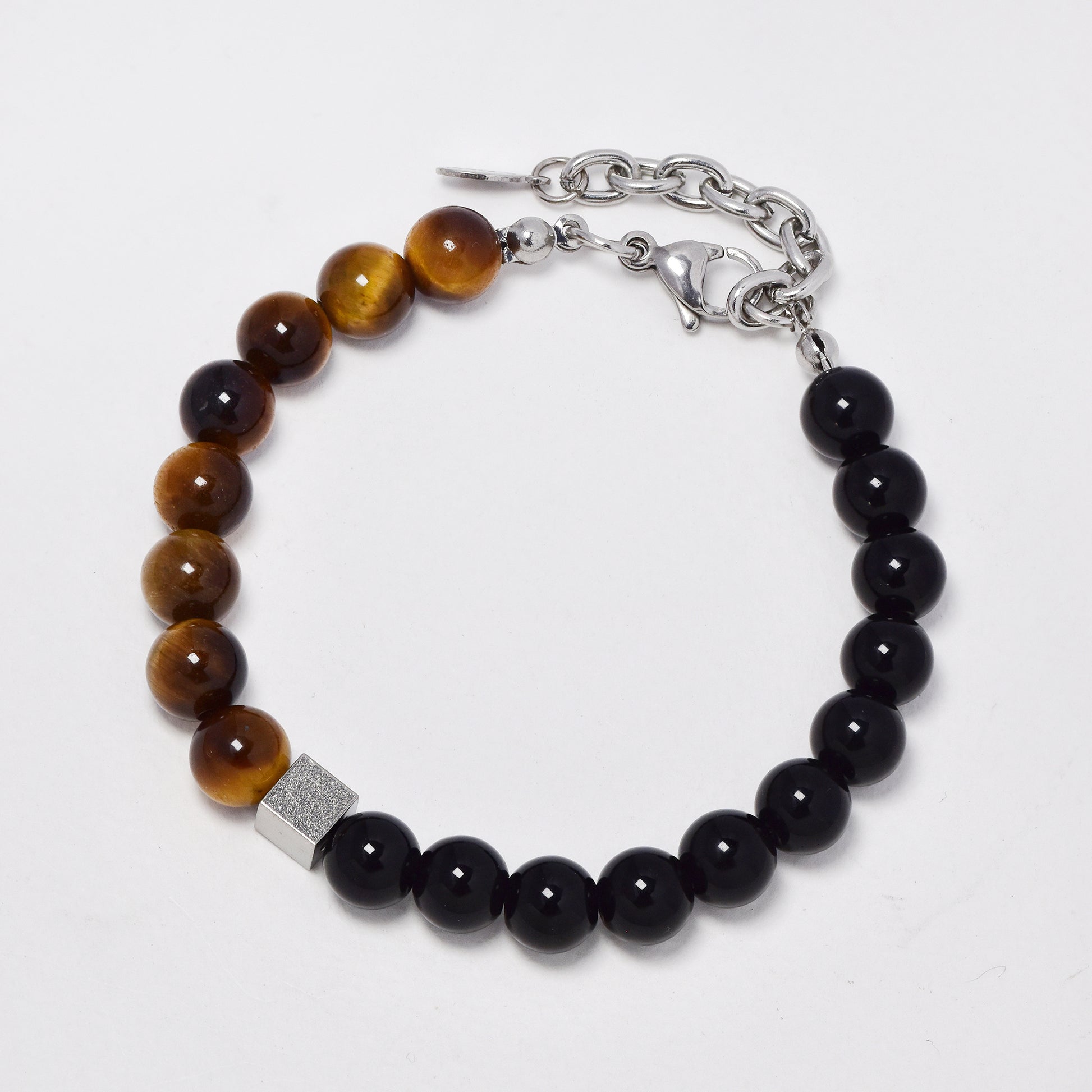 SSYB5909 - Steel 19.5cm + 4cm natural bead bracelet