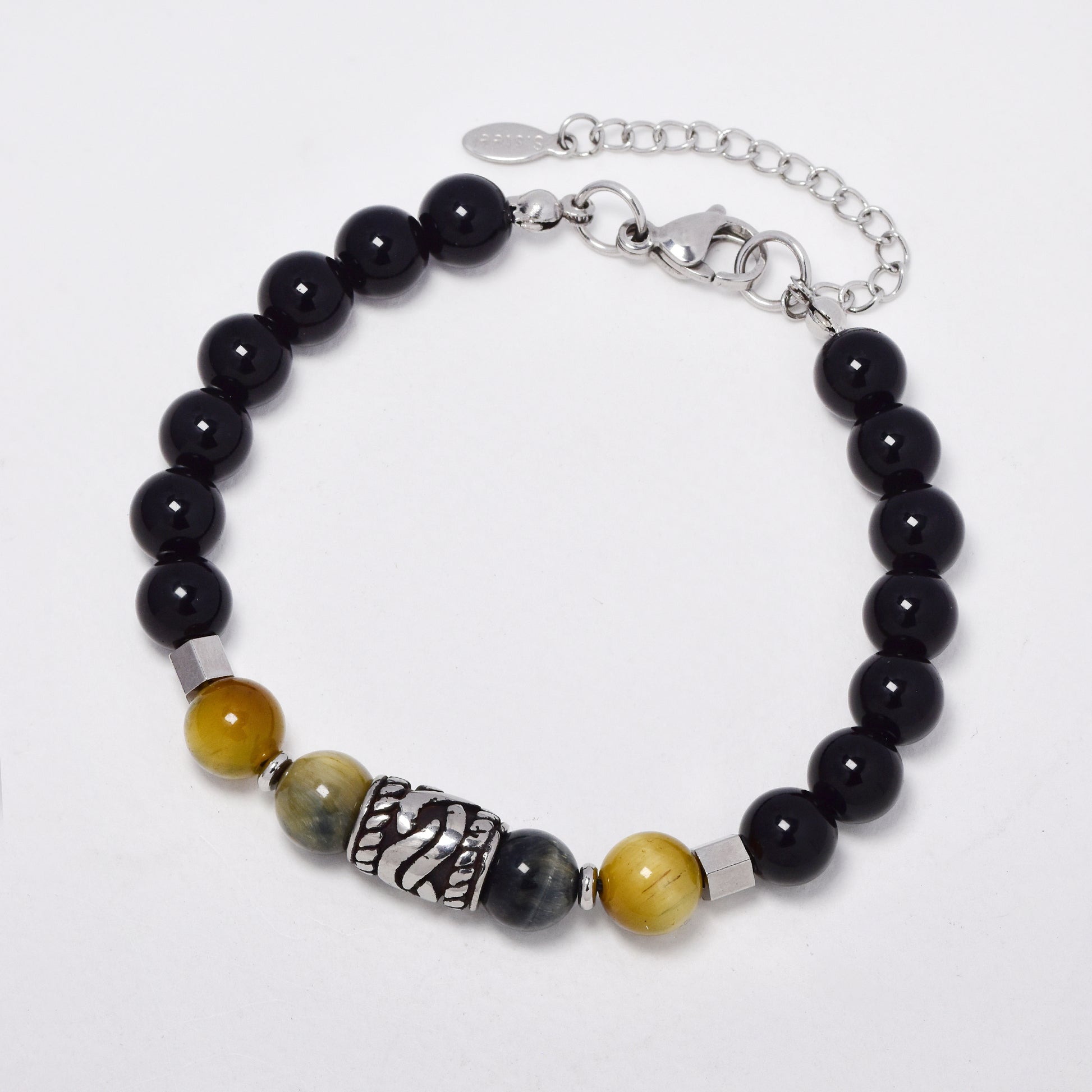SSYB5910 - Steel 20cm + 4.5cm natural bead bracelet