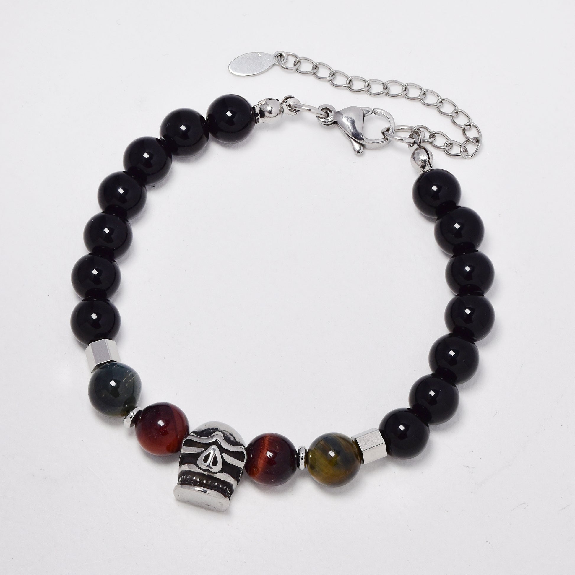 SSYB5912 - Steel 19.5cm + 5cm natural bead bracelet