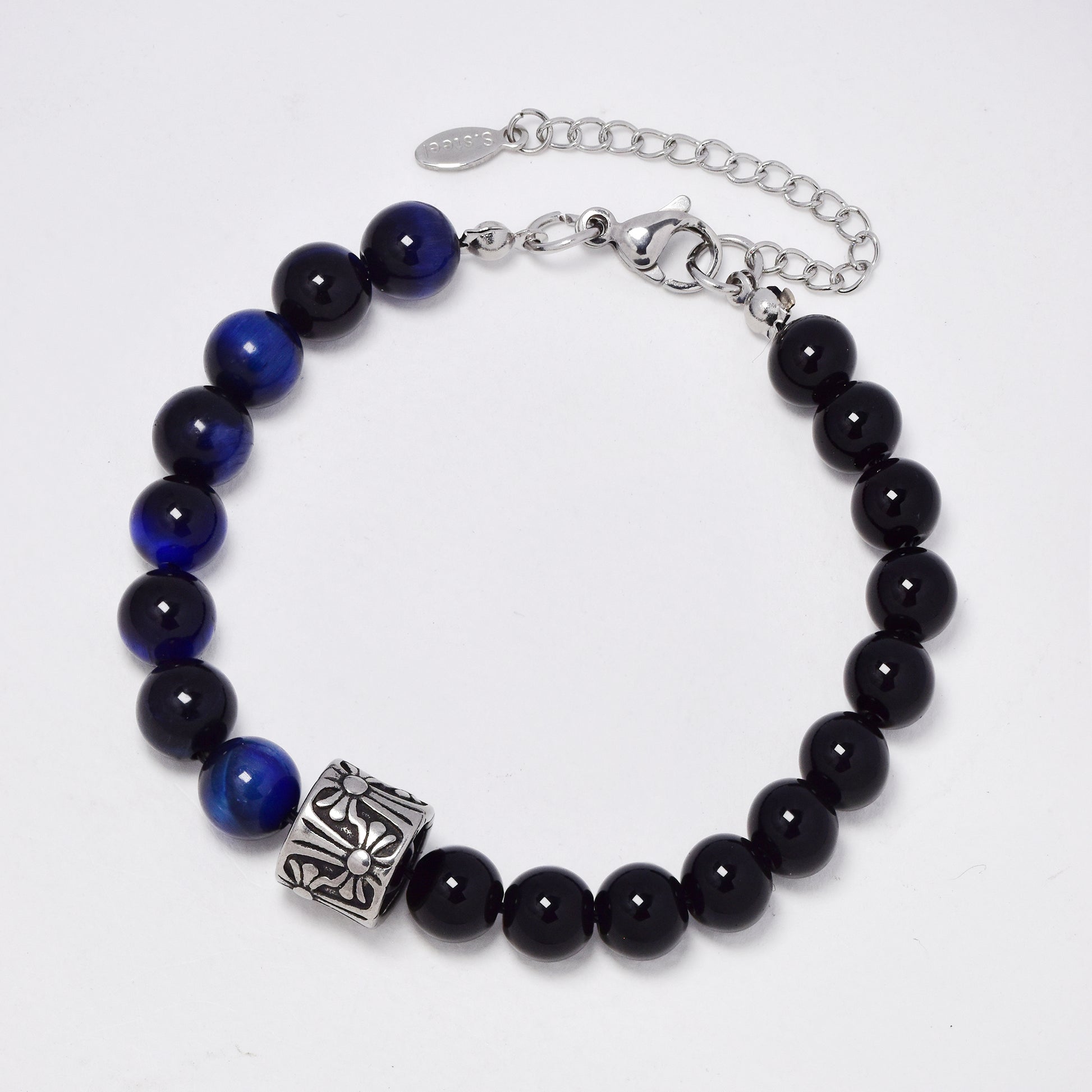 SSYB5913 - Steel 20.5cm + 5cm natural bead bracelet