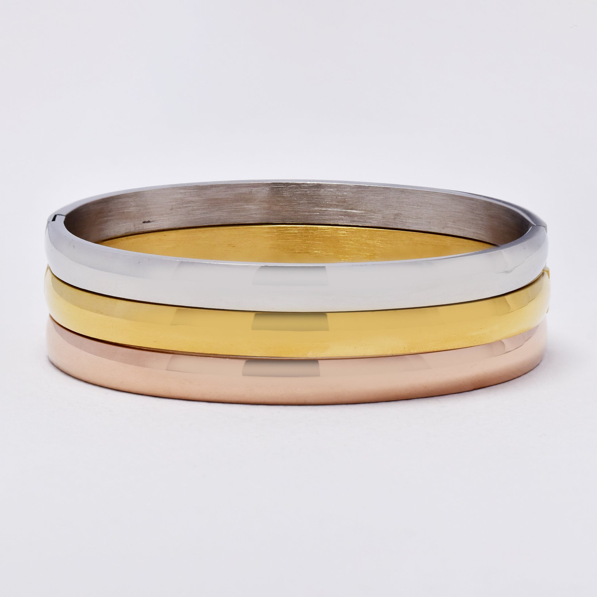 SSYB6272 - St Steel 65mm x 55mm x 6mm 3 piece tri-colour hinged bangle set